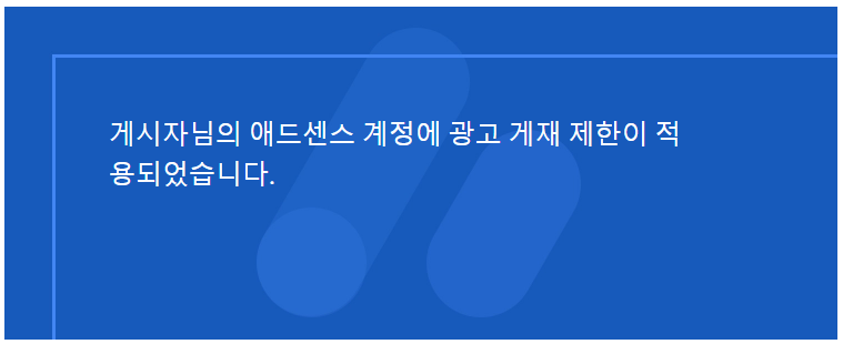 아니나 다를까, 적혀 있는 문구는 '애드센스 광고 게재 제한'이 적용되었다는 메시지였습니다. 저는 정말 아무것도 안 했거든요. 글도 안 쓰고 반은 방치중인 사이트에 뭐를 했을까요?